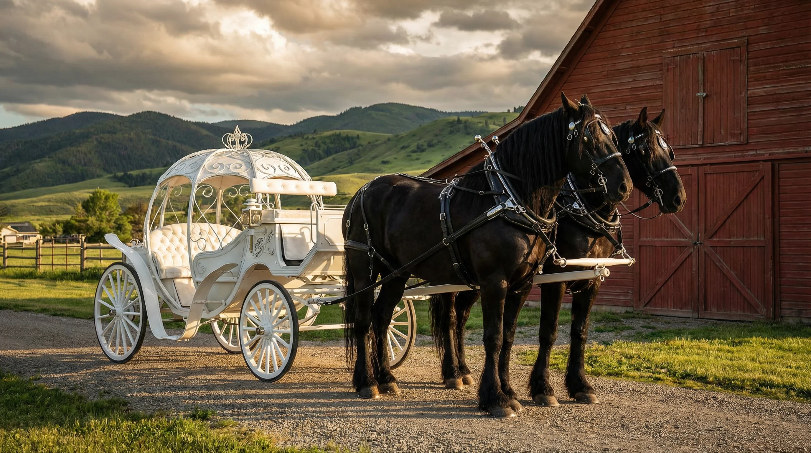 Make your wedding day unforgettable with a grand carriage entrance or a romantic departure beneath the stars. Our wedding carriage service includes a decorated carriage, a matched pair of Shires, and an experienced driver in period attire.